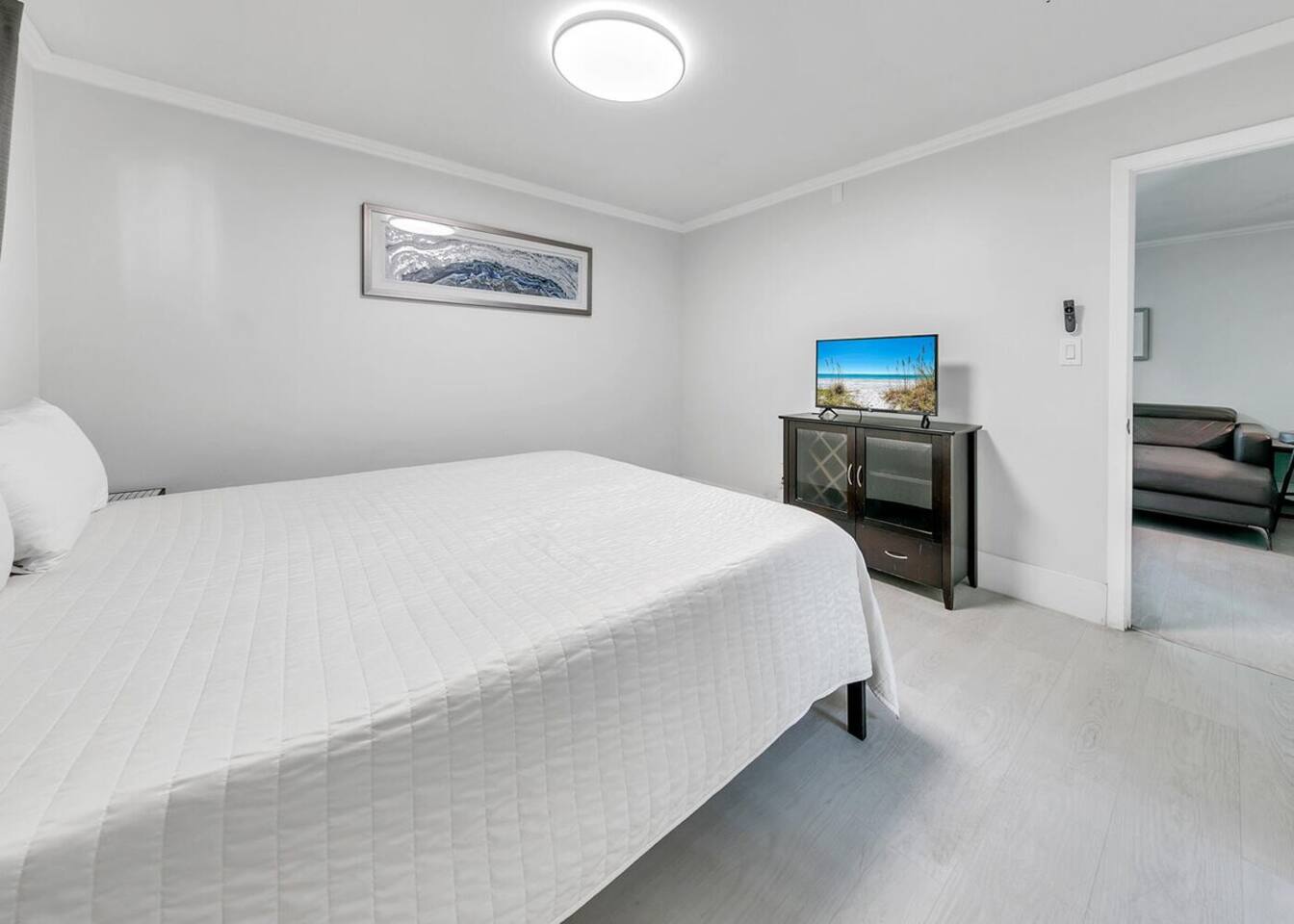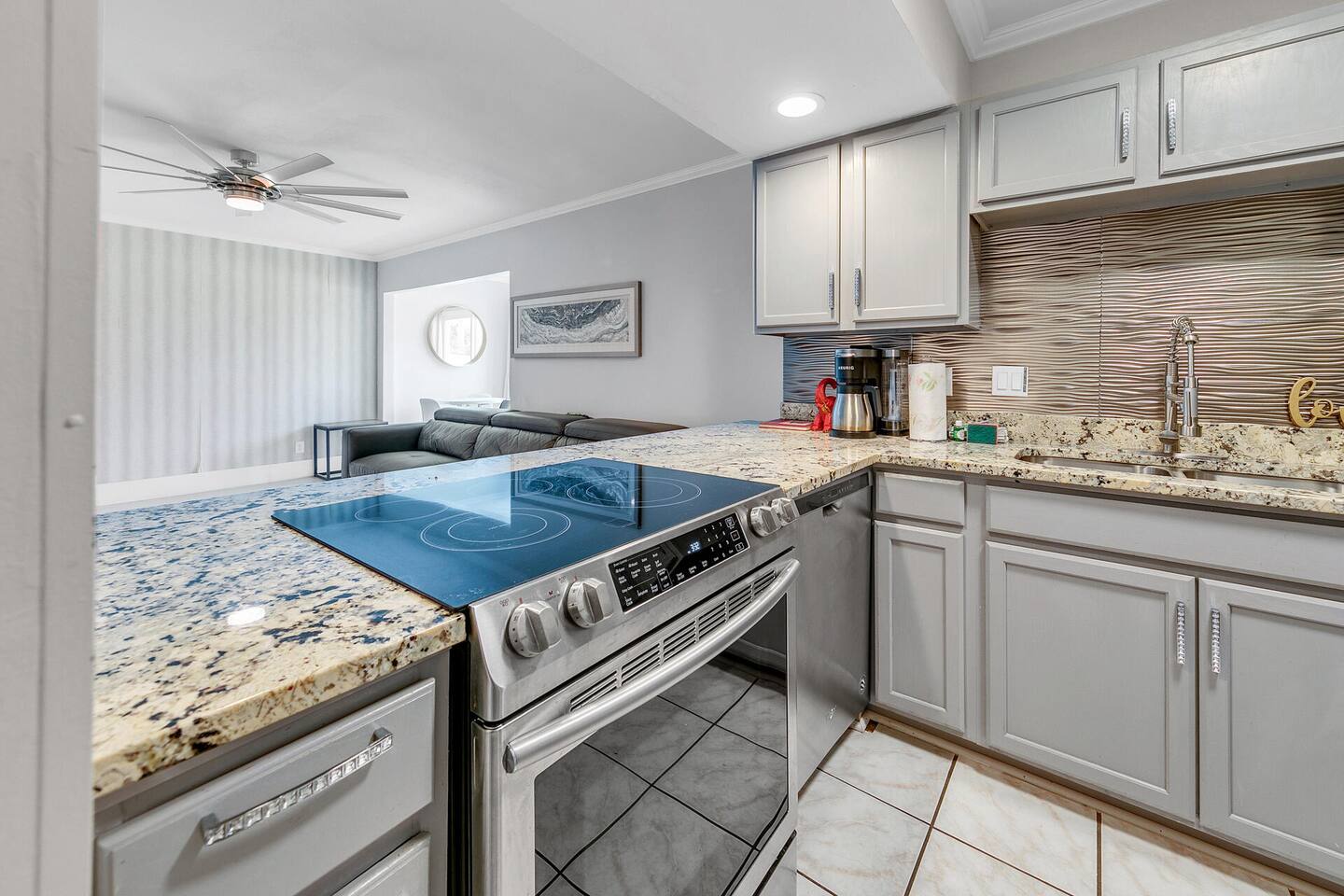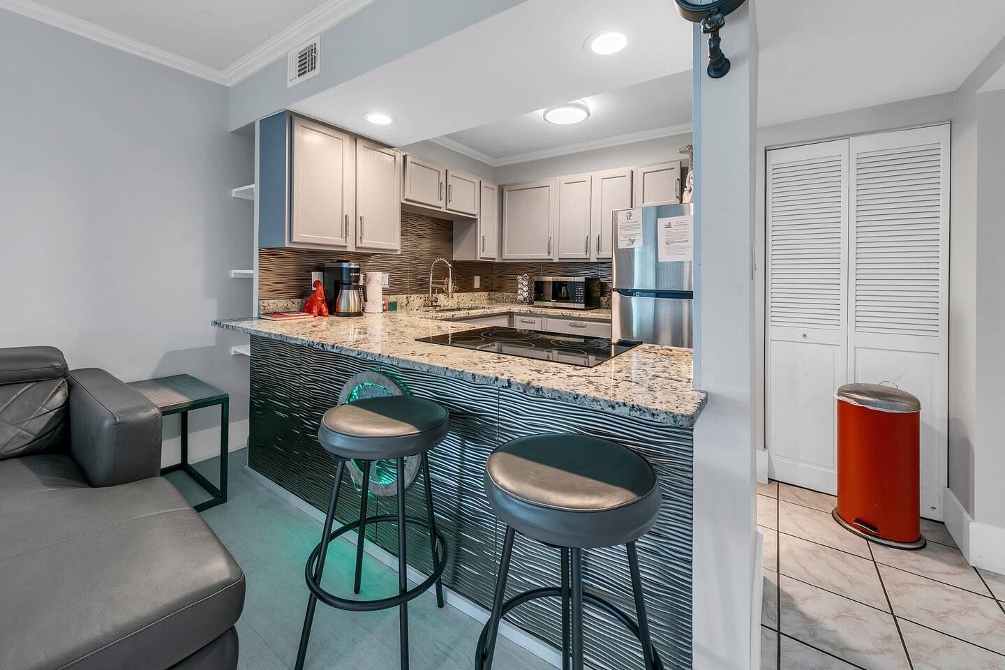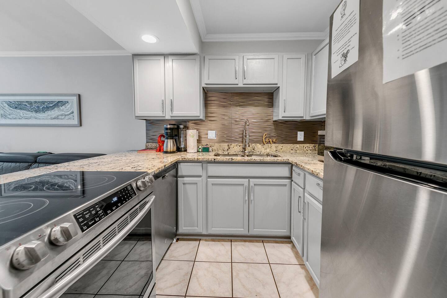 Please note that the area reflects its historical roots and may not be ideal for those seeking a luxury experience. This one-bedroom condo offers a gated community with three swimming pools, pickleball courts, and a picturesque lake, creating the perfect setting for your vacation getaway. Although this is a private unit, it is located in a condominium complex. There are neighboring units. We cannot control the noise level outside of our unit, so please ensure that you will not be bothered by noise in surrounding units. If you feel this would be bothersome, please do not book this unit. Upon arrival, you'll be greeted by an inviting open-style living room, complete with a plush lounging sofa and a 75-inch TV, ideal for cozy nights in with your loved one. The newly renovated kitchen features modern appliances, including a Keurig coffee maker for leisurely mornings together. With a king bed, this condo provides comfortable accommodations for couples seeking intimacy and relaxation. There is also an additional murphy bed in the hallway leading to the laundry room. We provide initial essentials for your convenience, and the full-sized washer and dryer ensure a stress-free stay. The option for additional romantic amenities like flowers and balloons are available at request for a fee. While our condo may show its age in some areas, we take pride in creating a space that radiates comfort and tranquility for couples. Though not beachfront, we're conveniently situated just one mile from public beach access points, allowing you to explore Destin's world-renowned sugar-white beaches hand in hand. Additionally, our central location puts you within close proximity to a variety of dining options, shopping venues, water parks, and vibrant nightlife, ensuring there's something for every couple to enjoy. Regardless if you're indulging in a romantic dinner for two or dancing the night away, Destin serves as the perfect home base for your romantic escapades! Whether you're celebrating a special occasion, planning a romantic getaway, or simply craving quality time together, Destin offers the ultimate retreat for couples seeking relaxation, rejuvenation, and unforgettable memories. Book your romantic escape today and embark on an unforgettable journey with your beloved. Amenities • 3 Outdoor Pools • Vending Machines by Pool • 2 Pickleball Courts • Free Wifi • Contactless Check in/out • Roku enabled smart TVs • Kitchen stocked with dishware, utensils, pots, and pans • Coffee maker with regular brew and Keurig • Supplied starting assorted essentials: paper products, soap, shampoo, and cleaning products • Washer & Dryer • Air conditioning & Heating • Public Grill available for use • Public EV Charger, vacuum, & air pump for use. Landmarks & Attractions • Big Kahuna's Water and Adventure Park – 3 min drive • Henderson Beach State Park – 3 min drive • The Track Family Recreation Center – 4 min drive • Morgan Sports Center – 4 min drive • Choctawhatchee Bay – 18 min drive • Indian Bayou Golf Club – 5 min drive • Destin Harbor – 6 min drive • Gator Beach – 4 min drive • Jetty East Beach – 9 min drive • Destin Harbor Boardwalk – 7 min drive • HarborWalk Marina – 7 min drive