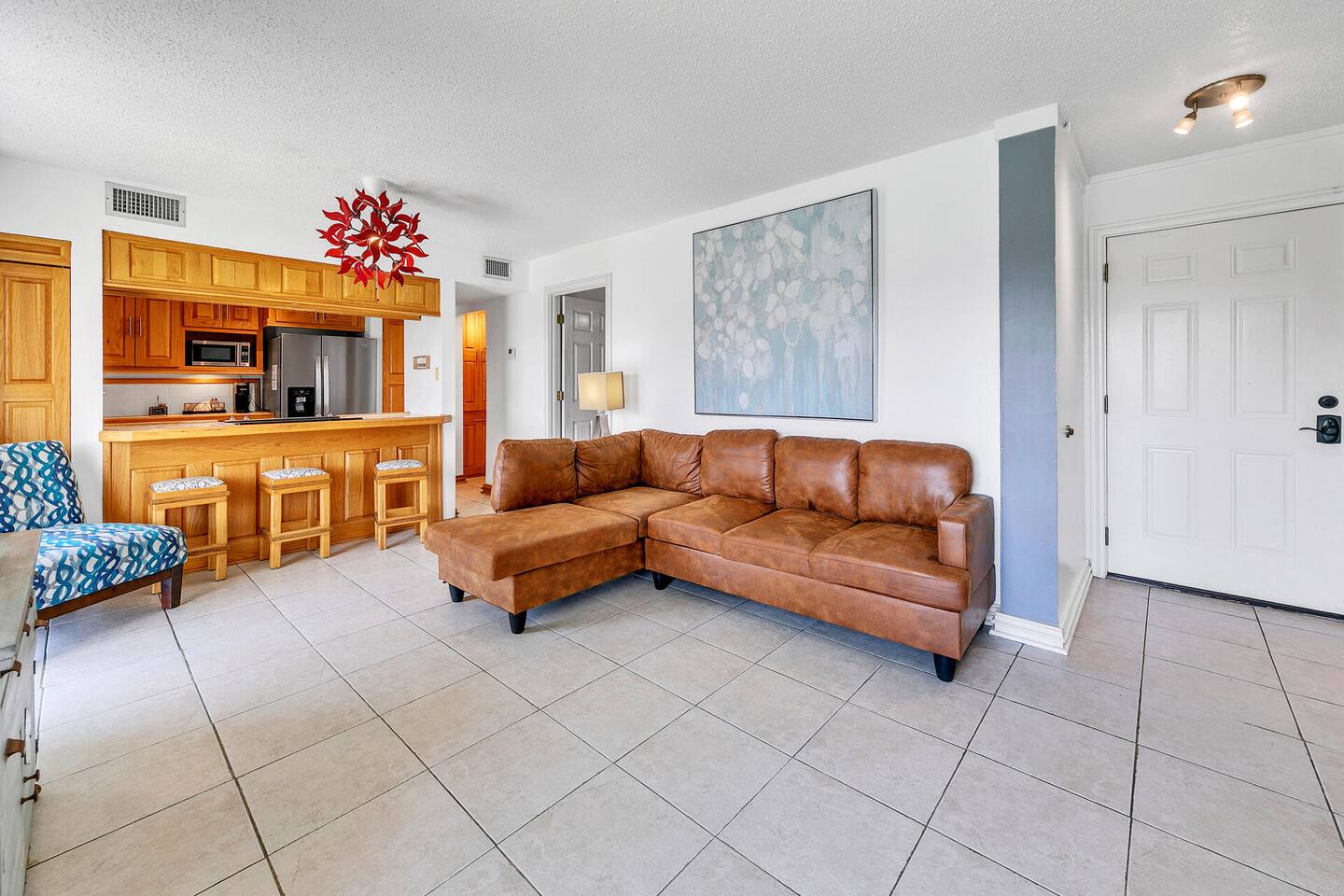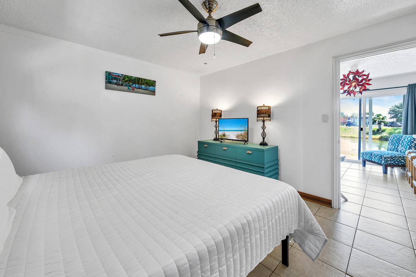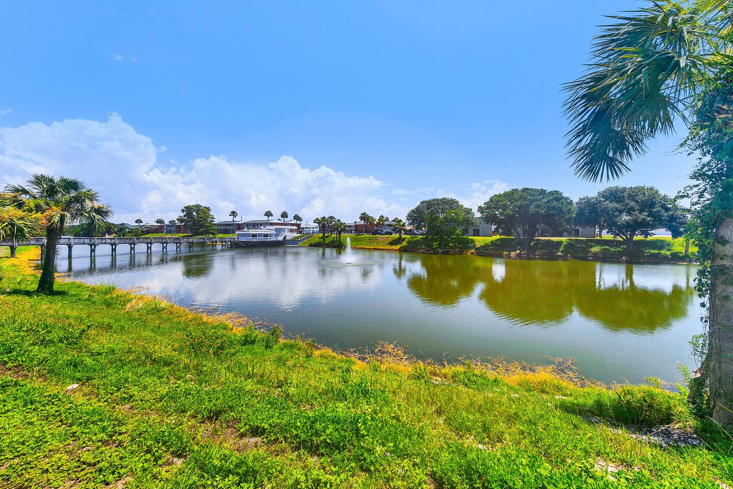 Please note that the area reflects its historical roots and may not be ideal for those seeking a luxury experience. This one-bedroom condo offers a gated community with three swimming pools, pickleball courts, and a picturesque lake, creating the perfect setting for your vacation getaway. Although this is a private unit, it is located in a condominium complex. There are neighboring units. We cannot control the noise level outside of our unit, so please ensure that you will not be bothered by noise in surrounding units. If you feel this would be bothersome, please do not book this unit. Upon arrival, you'll be greeted by an inviting open-style living room, complete with a plush lounging sofa and a 75-inch TV, ideal for cozy nights in with your loved one. The newly renovated kitchen features modern appliances, including a Keurig coffee maker for leisurely mornings together. With a king bed, this condo provides comfortable accommodations for couples seeking intimacy and relaxation. We provide initial essentials for your convenience, and the full-sized washer and dryer ensure a stress-free stay. The option for additional romantic amenities like flowers and balloons are available at request for a fee. While our condo may show its age in some areas, we take pride in creating a space that radiates comfort and tranquility for couples. Though not beachfront, we're conveniently situated just one mile from public beach access points, allowing you to explore Destin's world-renowned sugar-white beaches hand in hand. Additionally, our central location puts you within close proximity to a variety of dining options, shopping venues, water parks, and vibrant nightlife, ensuring there's something for every couple to enjoy. Regardless if you're indulging in a romantic dinner for two or dancing the night away, Destin serves as the perfect home base for your romantic escapades! Whether you're celebrating a special occasion, planning a romantic getaway, or simply craving quality time together, Destin offers the ultimate retreat for couples seeking relaxation, rejuvenation, and unforgettable memories. Book your romantic escape today and embark on an unforgettable journey with your beloved. Amenities • 3 Outdoor Pools • Vending Machines by Pool • 2 Pickleball Courts • Free Wifi • Contactless Check in/out • Roku enabled smart TVs • Kitchen stocked with dishware, utensils, pots, and pans • Coffee maker with regular brew and Keurig • Supplied starting assorted essentials: paper products, soap, shampoo, and cleaning products • Washer & Dryer • Air conditioning & Heating • Public Grill available for use • Public EV Charger, vacuum, & air pump for use. Landmarks & Attractions • Big Kahuna's Water and Adventure Park – 3 min drive • Henderson Beach State Park – 3 min drive • The Track Family Recreation Center – 4 min drive • Morgan Sports Center – 4 min drive • Choctawhatchee Bay – 18 min drive • Indian Bayou Golf Club – 5 min drive • Destin Harbor – 6 min drive • Gator Beach – 4 min drive • Jetty East Beach – 9 min drive • Destin Harbor Boardwalk – 7 min drive • HarborWalk Marina – 7 min drive