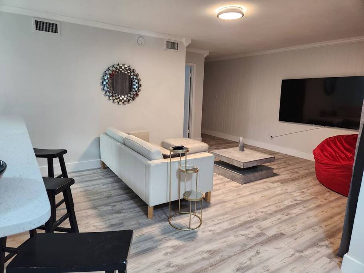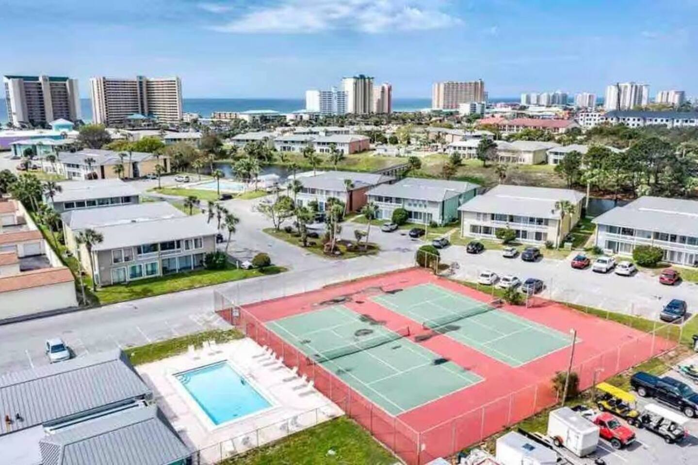 Please note that the area reflects its historical roots and may not be ideal for those seeking a luxury experience. Welcome to Destin, Florida, the World’s Luckiest Fishing Village also known for its sugar white beaches and emerald green waters! Your booking includes the entire first floor condo. Although this is a private unit, it is located in a condominium complex. There are neighboring units. We cannot control the noise level outside of our unit, so please ensure that you will not be bothered by noise in surrounding units. If you feel this would be bothersome, please do not book this unit. We cannot accommodate early check-in or late check-out. Check-in time is 4pm, Check-out time is 10am As you enter our condo with keyless entry, you will immediately walk into an open concept living room, breakfast-bar style seating, and kitchen. Why rush out of the condo in the mornings? This condo features a newly renovated kitchen outfitted with new appliances, including a fully stocked Keurig coffee maker, along with dishes and cookware for your stay. While we do not have a formal dining area, we do have a breakfast bar for mealtimes. Stay in and cook breakfast and enjoy that cup of coffee before your busy Destin day. Having to work during your stay or need a place to organize your itinerary? We also have a small workspace for our business travelers. Bedroom 1 has two queen sized bed with a Roku-enabled television. Bedroom 2 has two twin sized beds with a Roku-enabled TV as well. Two full bathrooms with their own shower. We supply the initial amount of courtesy toilet paper, paper towels, and trash bags along with dishwasher and dish soap which is typically enough for 48 hours. For larger groups or longer trips, it is recommended that you bring additional supplies to accommodate for your group and / or length of stay. The full-sized washer and dryer are tucked away in the laundry room. Our condo is over 50 years old and while it is greatly cared for, it may show its age in some places. Expect to find some loving wear and quaint aging. I take great pride in trying to create a space that people will love while putting a lot of thought and time into my homes to share with you. When you are staying at my place, I want you to feel taken care of with all the creature comforts and hopefully a little extravagance! While it may not be the Ritz-Carlton or a luxury vacation home, we believe you will enjoy our space. This is the right space for you if you are looking for a quick beach trip, if you’re a weary traveler passing through, looking for a cost-effective family vacation, or just need an escape with someone special without being cramped in a hotel room. We’ve recently made some updates to this space to create a comfortable, modern, relaxing place located in a diverse community in central Destin. We are only about one mile from the closest public beach access, but there are three pools in the complex. Please keep in mind this is NOT within walking distance to the beach and we do NOT advertise beachfront or near beach access in any way. The closest public beach access is near The Back Porch (about one mile) or really any of the many public beaches you can choose to drive to throughout Destin. Henderson Beach State Park and June Decker Public Access are the closest locations to our complex. Discovery of a pet that has been snuck into the condo is a fee of $200. Our home is the perfect location for solo travelers, birthdays, anniversaries, romantic getaways, or your group of friends and / or family. Book today! Amenities • 3 Outdoor Pools • Vending Machines by Pool • 2 Pickleball Courts • Free Wifi • Contactless Check in/out • Roku enabled smart TVs • Kitchen stocked with dishware, utensils, pots, and pans • Coffee maker with regular brew and Keurig • Supplied starting assorted essentials: paper products, soap, shampoo, and cleaning products • Washer & Dryer • Air conditioning & Heating • Public Grill available for use • Public EV Charger, vacuum, & air pump for use. Landmarks & Attractions • Big Kahuna's Water and Adventure Park – 3 min drive • Henderson Beach State Park – 3 min drive • The Track Family Recreation Center – 4 min drive • Morgan Sports Center – 4 min drive • Choctawhatchee Bay – 18 min drive • Indian Bayou Golf Club – 5 min drive • Destin Harbor – 6 min drive • Gator Beach – 4 min drive • Jetty East Beach – 9 min drive • Destin Harbor Boardwalk – 7 min drive • HarborWalk Marina – 7 min drive