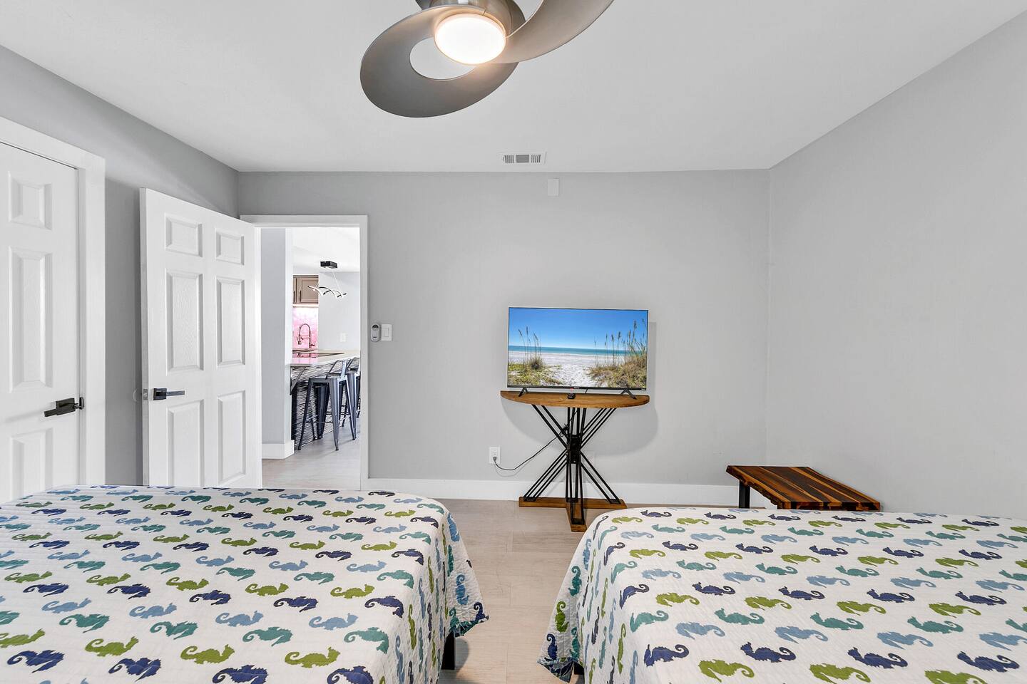 Please note that the area reflects its historical roots and may not be ideal for those seeking a luxury experience. This one-bedroom condo offers a gated community with three swimming pools, tennis courts, and a picturesque lake, creating the perfect setting for your vacation getaway. Although this is a private unit, it is located in a condominium complex. There are neighboring units. We cannot control the noise level outside of our unit, so please ensure that you will not be bothered by noise in surrounding units. If you feel this would be bothersome, please do not book this unit. Upon arrival, you'll be greeted by an inviting open-style living room, complete with a plush lounging sofa and a projector screen, ideal for cozy nights in with your loved one. The newly renovated kitchen features modern appliances, including a Keurig coffee maker for leisurely mornings together. With two queen beds, this condo provides comfortable accommodations and relaxation. We provide initial essentials for your convenience, and the full-sized washer and dryer ensure a stress-free stay. While our condo may show its age in some areas, we take pride in creating a space that radiates comfort and tranquility for couples. Though not beachfront, we're conveniently situated just one mile from public beach access points, allowing you to explore Destin's world-renowned sugar-white beaches hand in hand. Additionally, our central location puts you within close proximity to a variety of dining options, shopping venues, water parks, and vibrant nightlife, ensuring there's something for every couple to enjoy. Regardless if you're indulging in a romantic dinner for two or dancing the night away, Destin serves as the perfect home base for your vacation escapades! Whether you're celebrating a special occasion, planning a romantic getaway, or simply craving quality time together, Destin offers the ultimate retreat for couples seeking relaxation, rejuvenation, and unforgettable memories. Book your today and embark on an unforgettable journey. Amenities • 3 Outdoor Pools • Vending Machines by Pool • 2 Pickleball Courts • Free Wifi • Contactless Check in/out • Roku enabled smart TVs • Kitchen stocked with dishware, utensils, pots, and pans • Coffee maker with regular brew and Keurig • Supplied starting assorted essentials: paper products, soap, shampoo, and cleaning products • Washer & Dryer • Air conditioning & Heating • Public Grill available for use • Public EV Charger, vacuum, & air pump for use. Landmarks & Attractions • Big Kahuna's Water and Adventure Park – 3 min drive • Henderson Beach State Park – 3 min drive • The Track Family Recreation Center – 4 min drive • Morgan Sports Center – 4 min drive • Choctawhatchee Bay – 18 min drive • Indian Bayou Golf Club – 5 min drive • Destin Harbor – 6 min drive • Gator Beach – 4 min drive • Jetty East Beach – 9 min drive • Destin Harbor Boardwalk – 7 min drive • HarborWalk Marina – 7 min drive