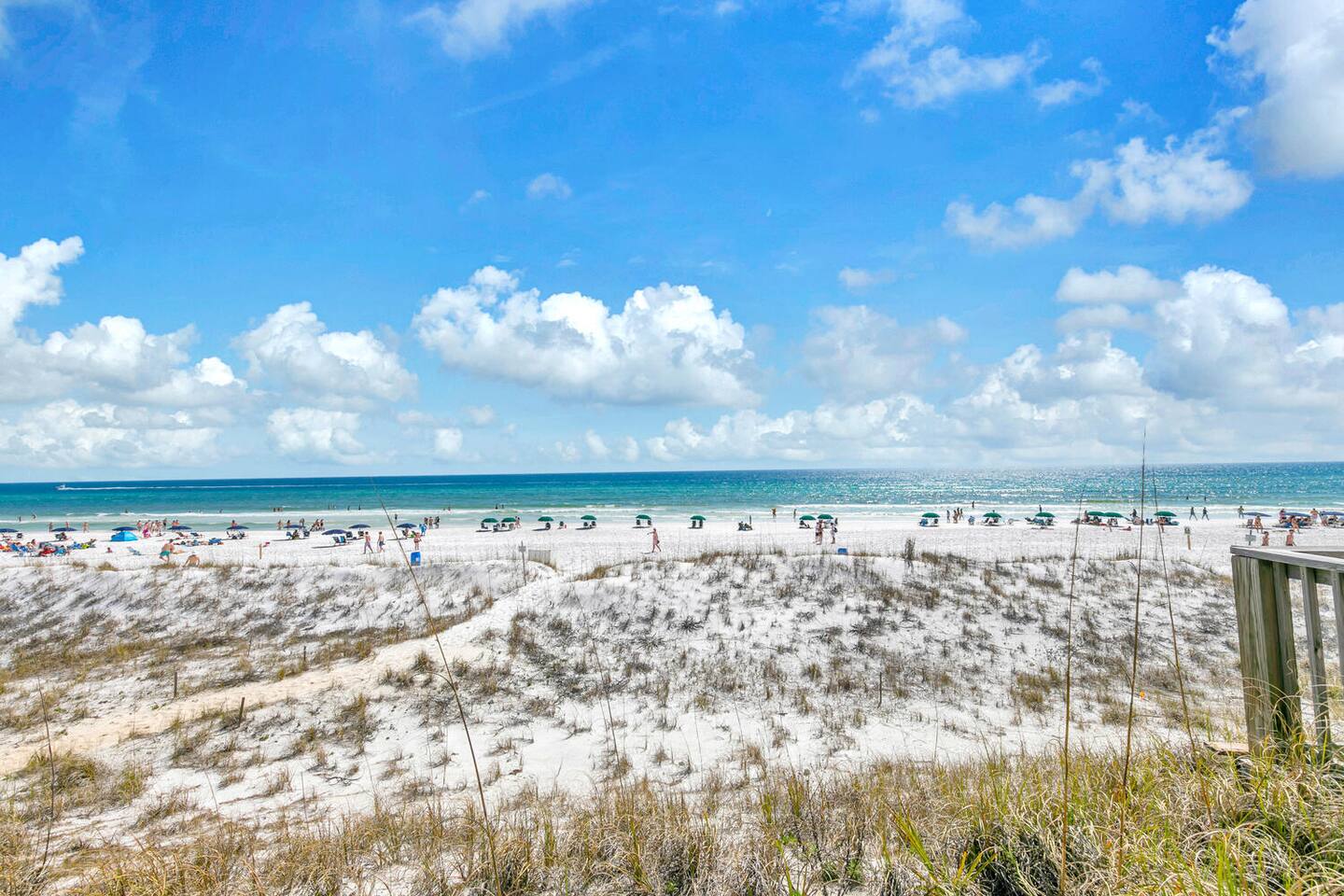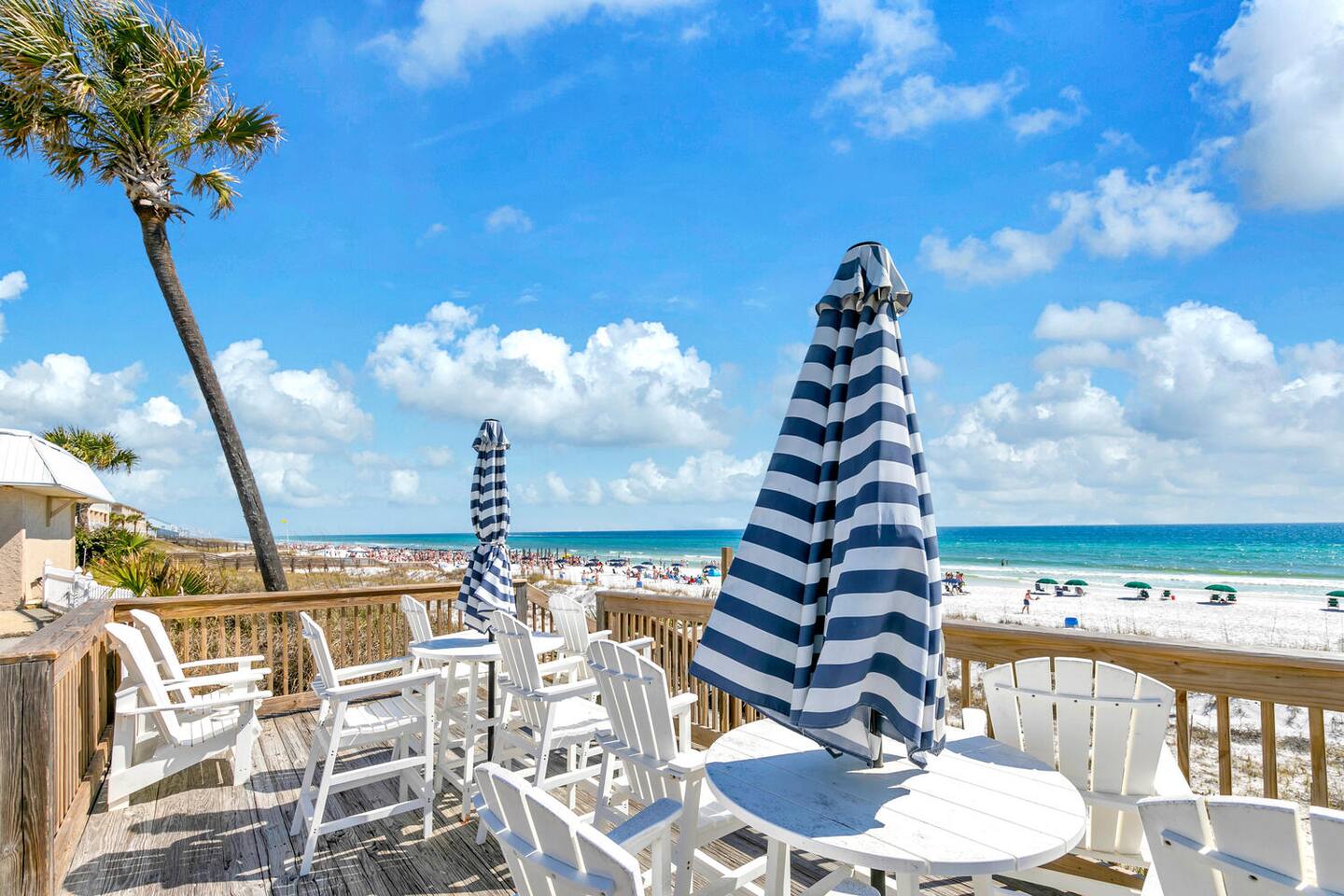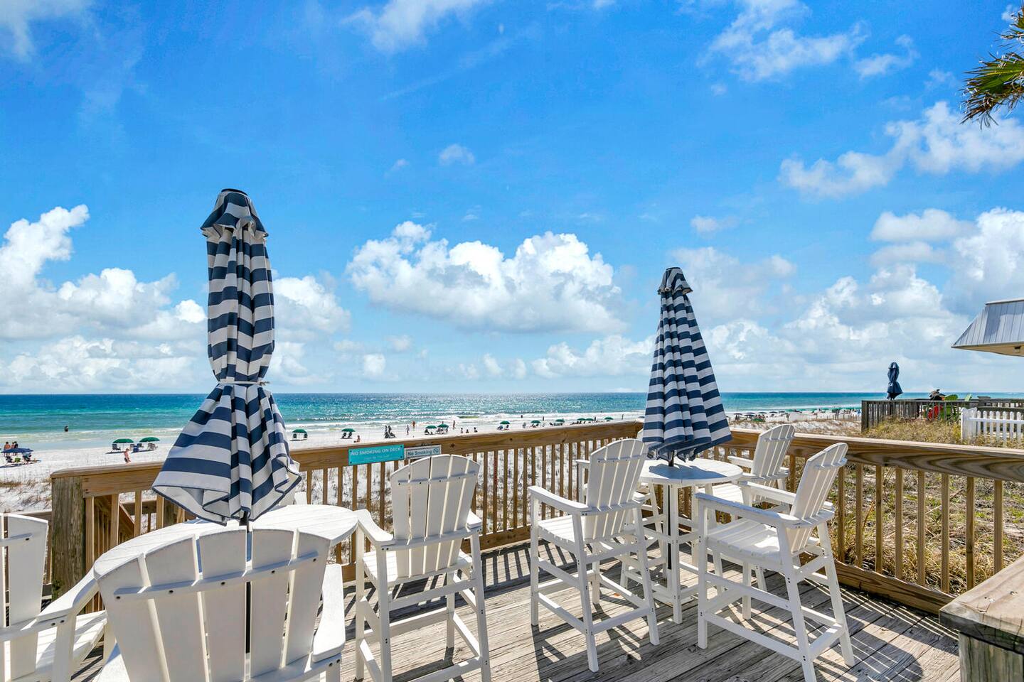 Enjoy direct beach access, , a fully equipped kitchen, Wi-Fi, in-unit laundry, and ground-level parking. Relax on Destin’s sugar-white sands—don’t forget the sunscreen for sunbathing on your private beach!